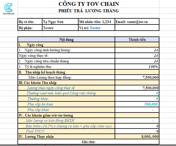 Phiếu lương được bảo mật bằng mật khẩu riêng cho mỗi cá nhân.